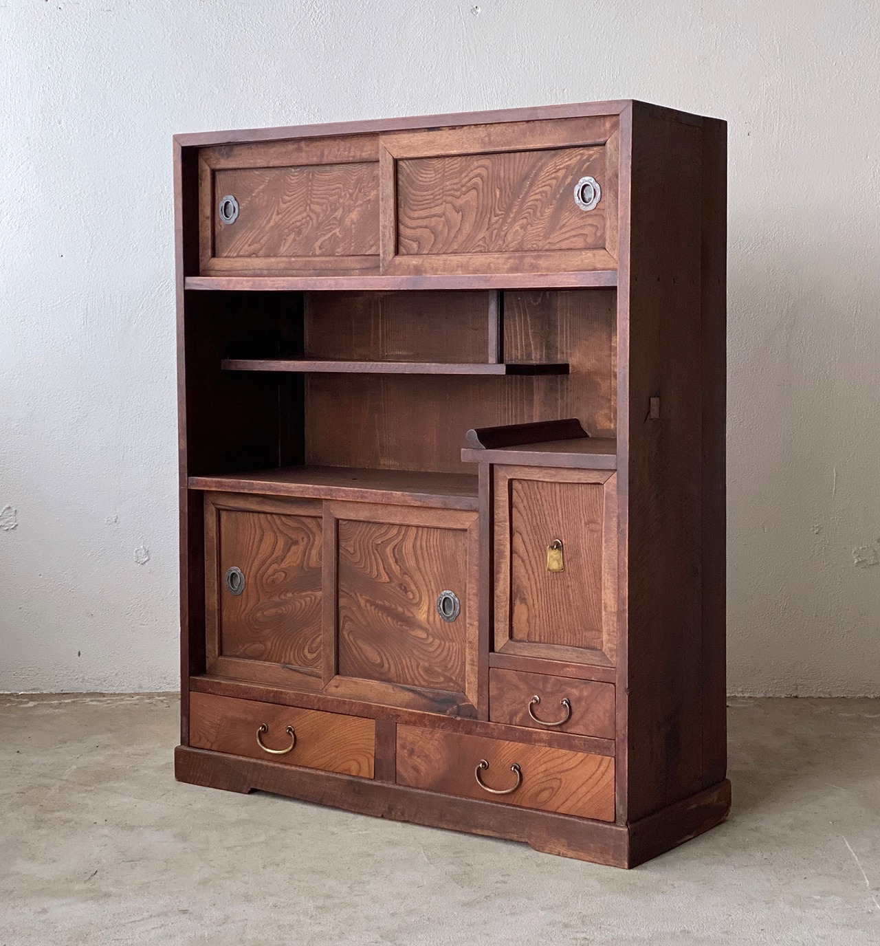 アケボノ 茶箪笥 飾り棚 和家具 棚 昭和レトロ ケヤキ 欅 茶箪笥 リメイク家具 日本製 和茶棚 サイドボード 和風 飾り棚 食器棚 卓上 和モダン家具 昭和レトロ チェスト・キャビネット ワジン 通販Creema クリーマ16702893。