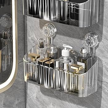 Amazonシャンプーラック 浴室用ラック お風呂 ラック 吸盤式 バスラック 壁掛け 収納ラック おしゃれ 強力吸盤 水切り 石鹸置きパンチフリー 浴室 ラック シャンプー ラック お風呂ラック 洗面所 キッチン 風呂 バスルーム 多機能 棚 収納とうめいしょく,L2個 浴室。