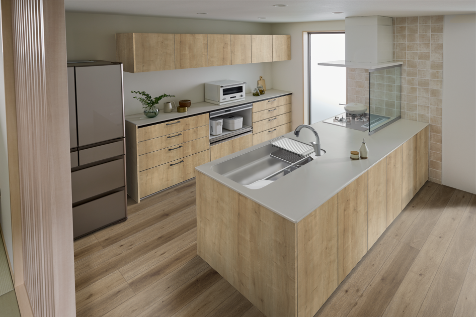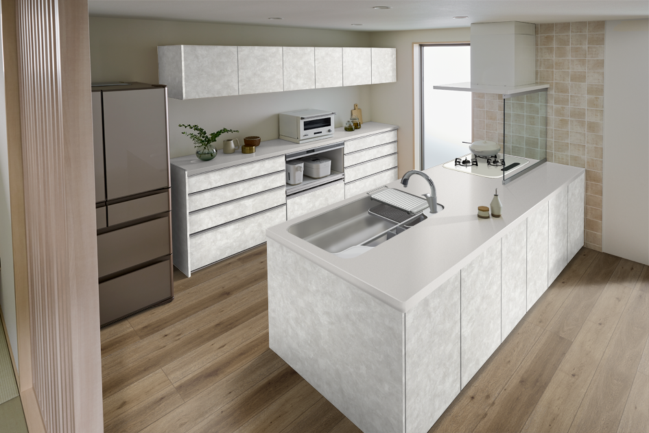 LIXIL シエラ グレージュスタッコ 北欧ナチュラルなキッチンリフォーム杉並区住宅リフォーム・リノベーション専門のLIXILリフォームショップ。