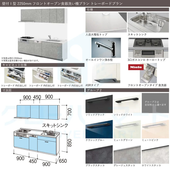 決算セールLIXIL リクシル システムキッチン ノクトnoct壁付I型 W2250mm225cmフロントオープン食器 —クローバーマート。