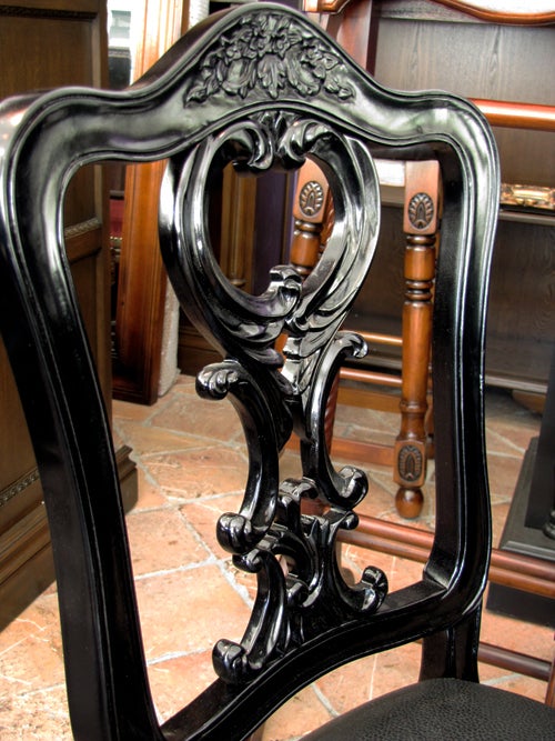 ロココ調猫脚ダイニングチェア かっこいい黒家具インテリア ゴシック調 アンチーク調アンティーク家具 のプロが監修した本格アンティークリプロダクションクラシックデモダンソファーやレジカウンターなどの店舗什器。