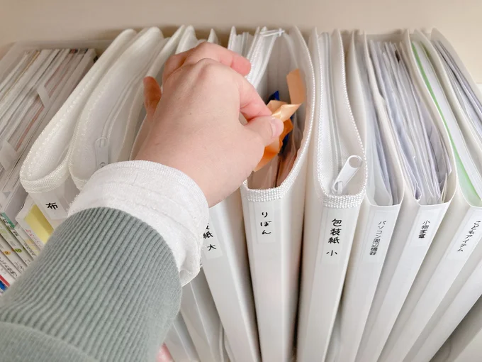 福砂屋包装紙リメイクのすゝめ 気持ち新たに始まる春☘️ 大事な書類や、思い出の紙モノも、包装紙柄のファイルですっきり収納♪ Fukusaya'sremake tips. We made a file with wrapping paper. Spring is the time for afresh start. Store important documents and。