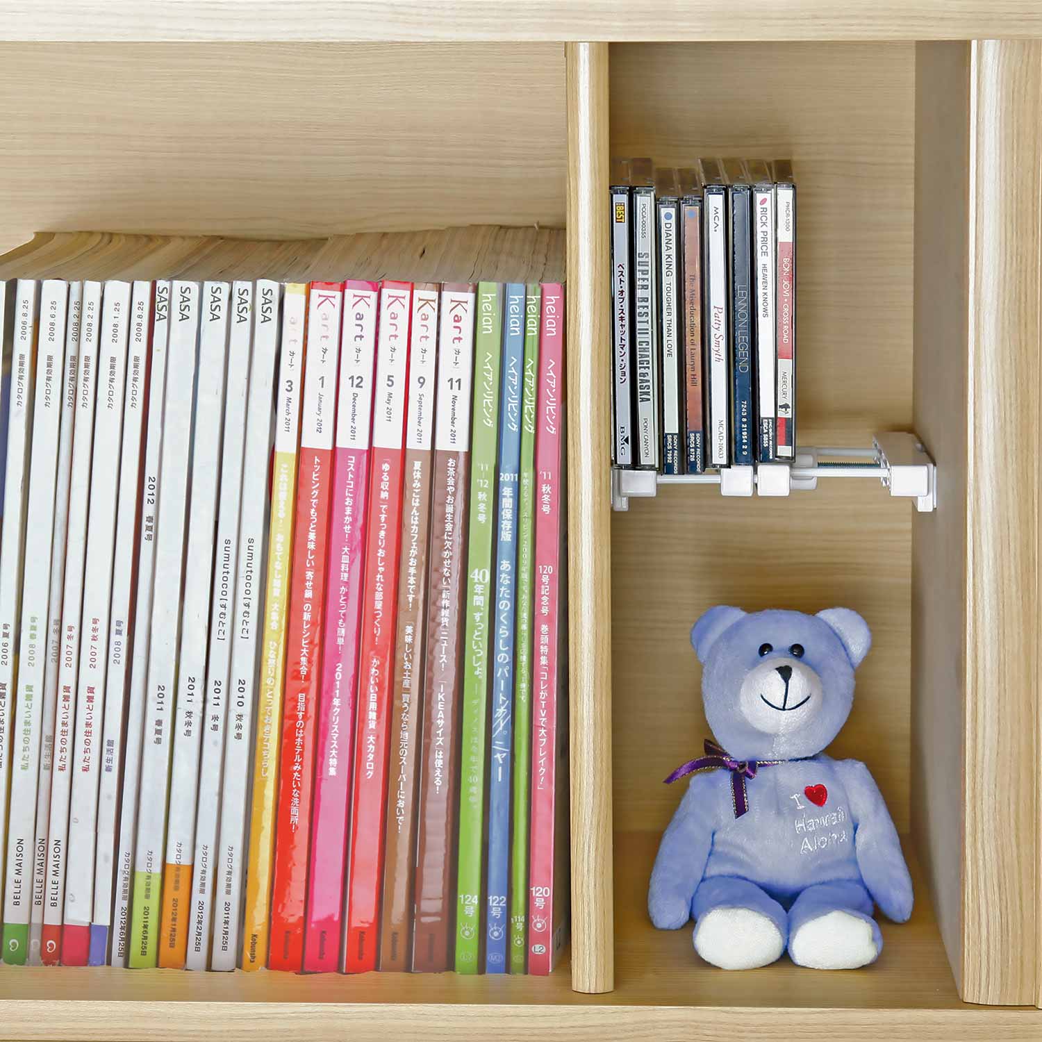 プラスチックケースとつっぱり棒を組み合わせて収納力アップ。