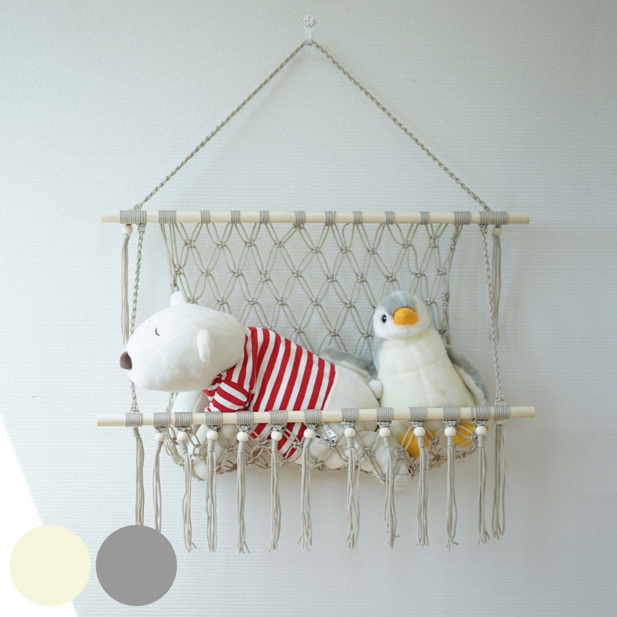 ウォールポケット 壁掛け ルームモック ぬいぐるみ収納 小物 小物入れ 小物収納 ハンモック 吊り下げ 壁面収納 ポケット フック付き ネットディスプレイ おしゃれ 壁掛け収納 リビング 壁 見せる収納 おもちゃ収納 インテリアベージュベージュ。
