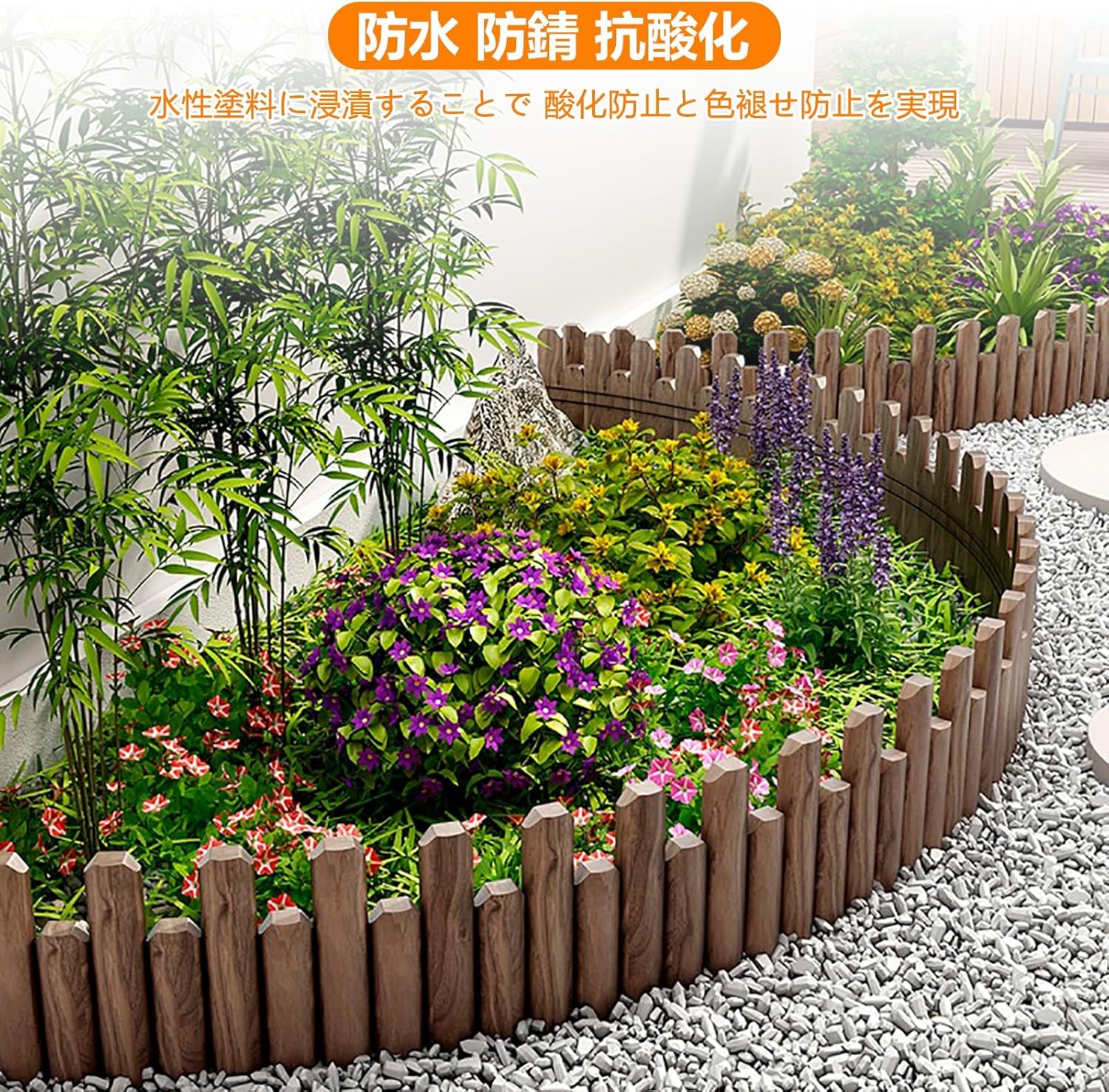 ガーデニング「ウッドフェンスのカラフル花壇」の作り方ぬくもり。