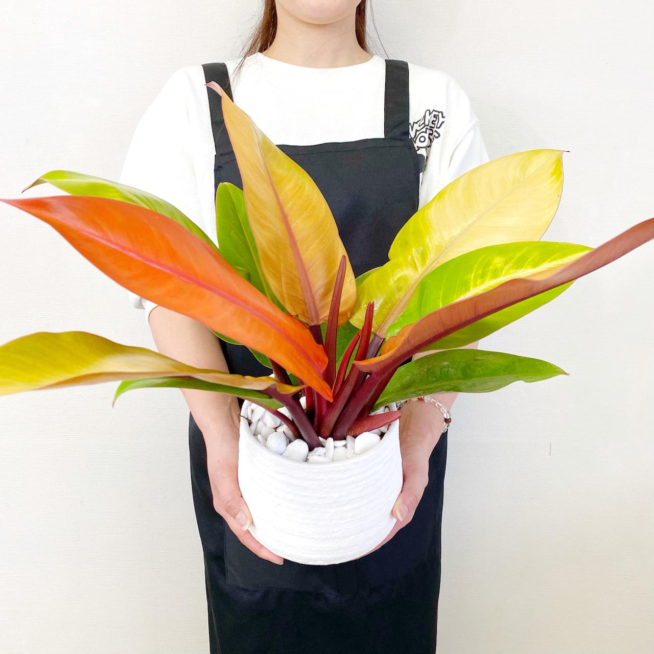 観葉植物 フィロデンドロン プリンスオブオレンジ 5号 陶器鉢 鉢カラー ホワイトBotanical Market KARACO。