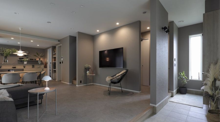 一条工務店山陰様 グレーやベージュを基調にした異素材が響き合うお家 - 本内家具。