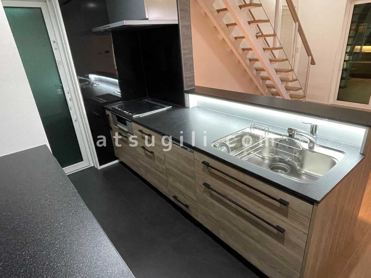 人気のグレージュカラーで建具やキッチン、フローリングを統一したオーナー様邸☺️お子様が遊ぶリビングには、あえて固定のソファやローテーブルを置かず、自由度を高くすることでのびのび過ごせます🧸🫧 建物タイプ :グランスマートフローリング:モクリア グレー。