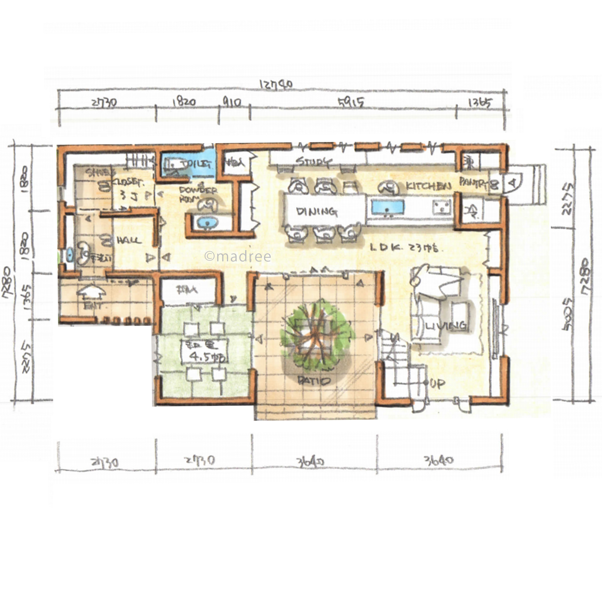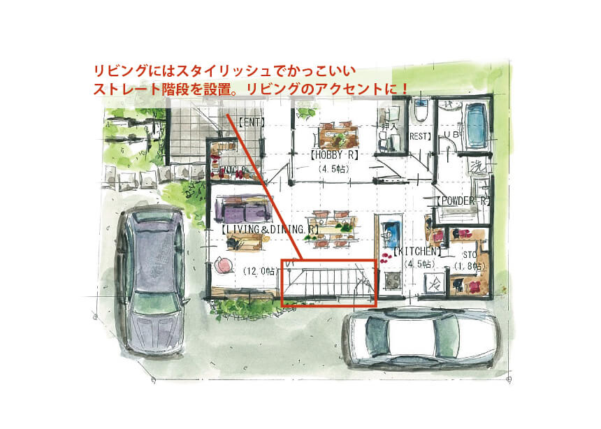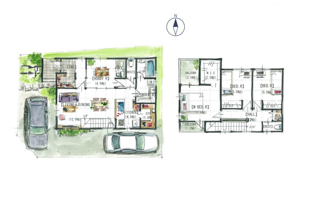 手描きの平面図でおしゃれで可愛く演出オシャレな手書きパースの作成「手描きパース工房」全国対応。