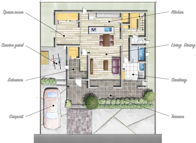 高品質!建築士がオシャレな間取りイラスト作成します お庭も家具もお任せください!お洒落にわかりやすく描きます!ココナラ。
