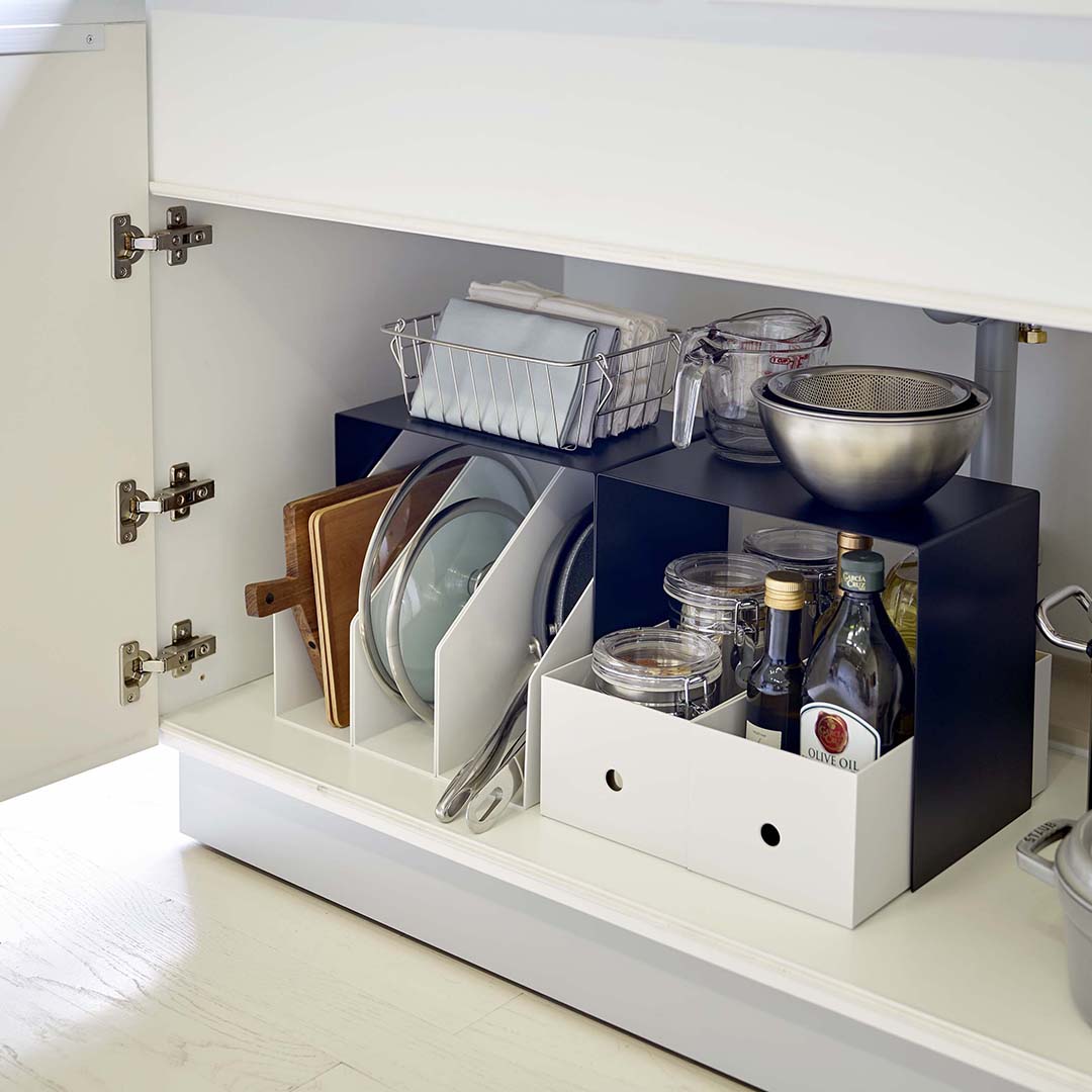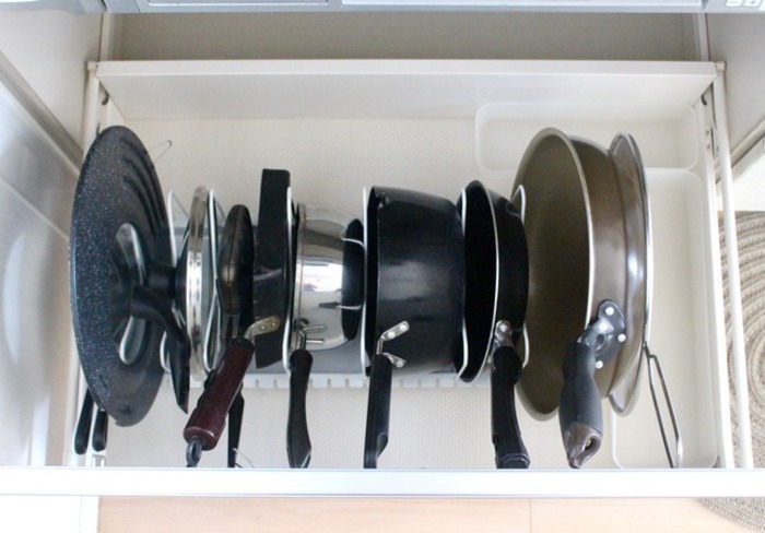シンク下に!フライパン収納のおすすめアイテム10選。引き出し・開き戸に合わせたコツは?ハウジーマガジン。