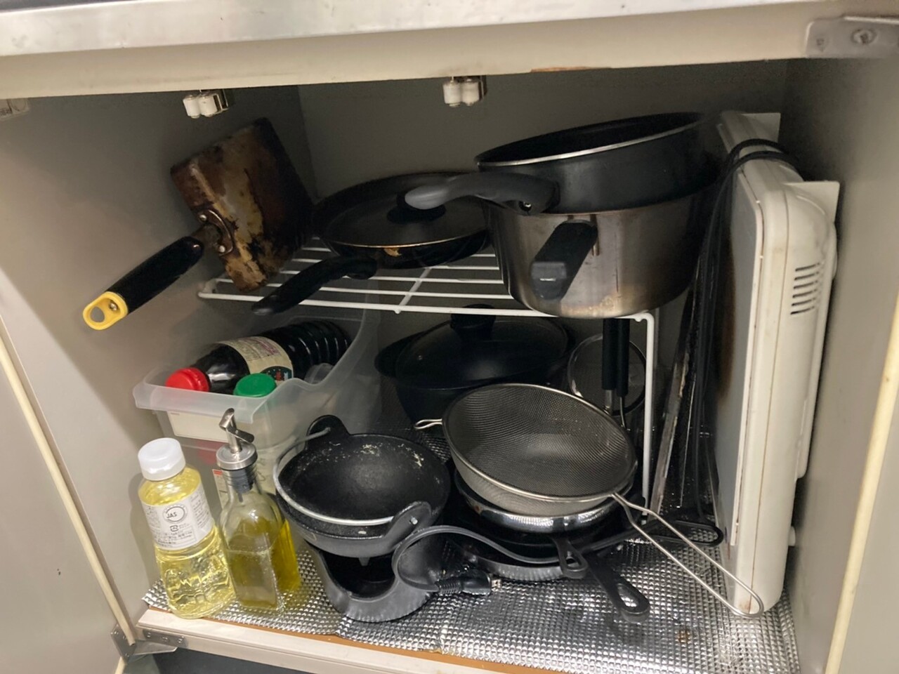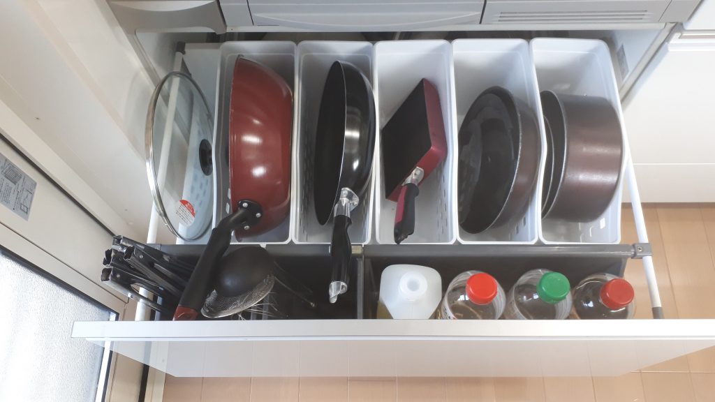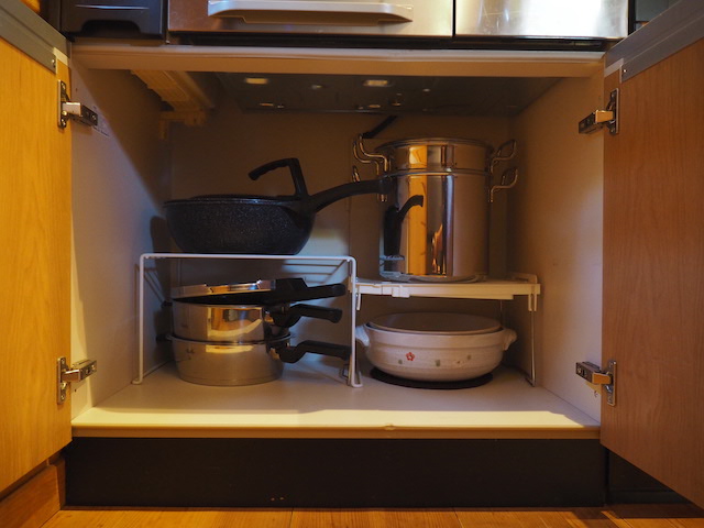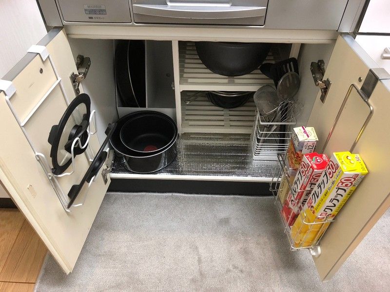 観音開きのコンロ下、フライパン収納の正解は?プロの100均活用術ビル・土地の記事メディア。