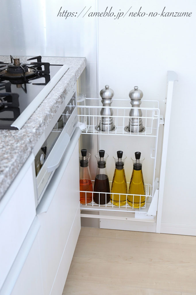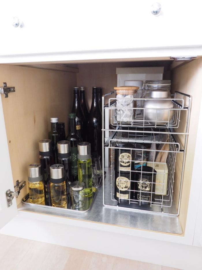 観音開きのコンロ下収納 100均グッズを使って調味料やキッチンアイテムを取り出しやすくしてみましたSAKURASAKU。