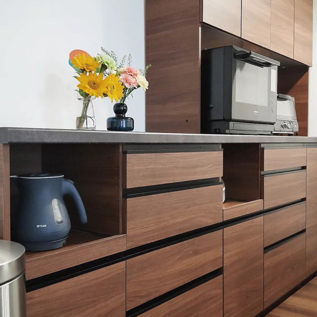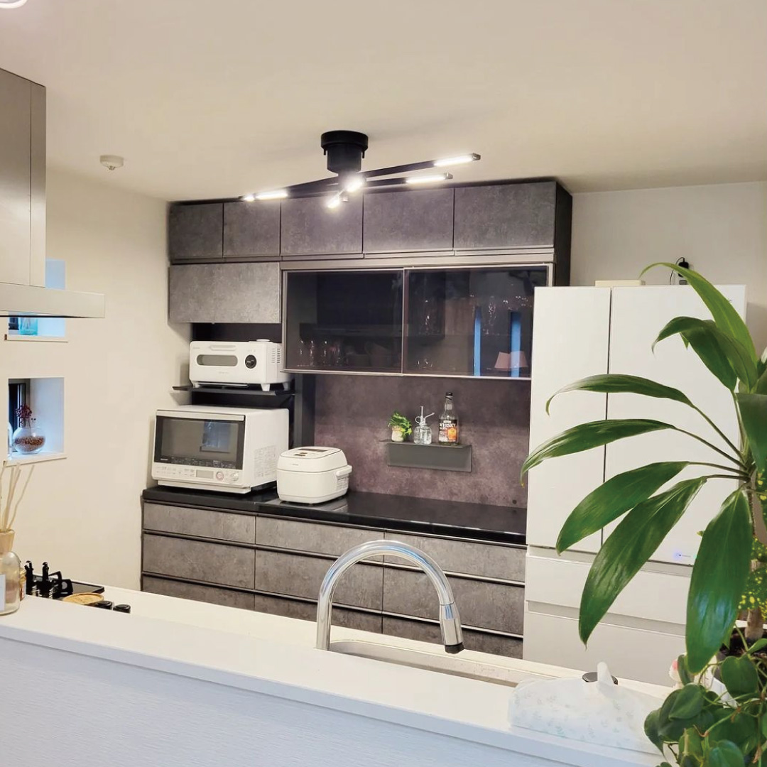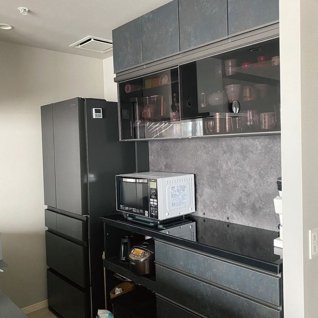 パモウナ食器棚CPシリーズ実例と特徴 CPA-1400RM+CPA-600RM・ハイマットブラック・上置あり- interior designoffice BEORCブログ居心地のよいインテリアデザイン・リフォームNCDのカラー&イメージ講座福岡。
