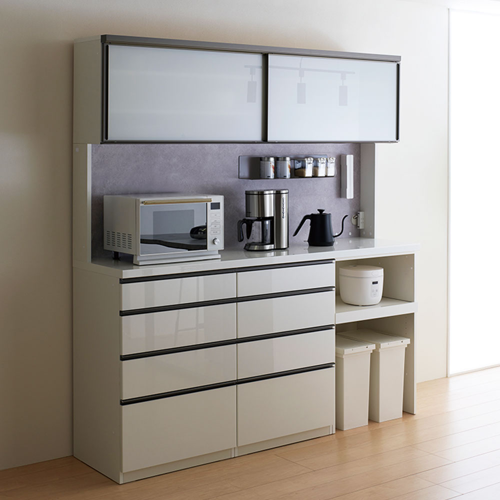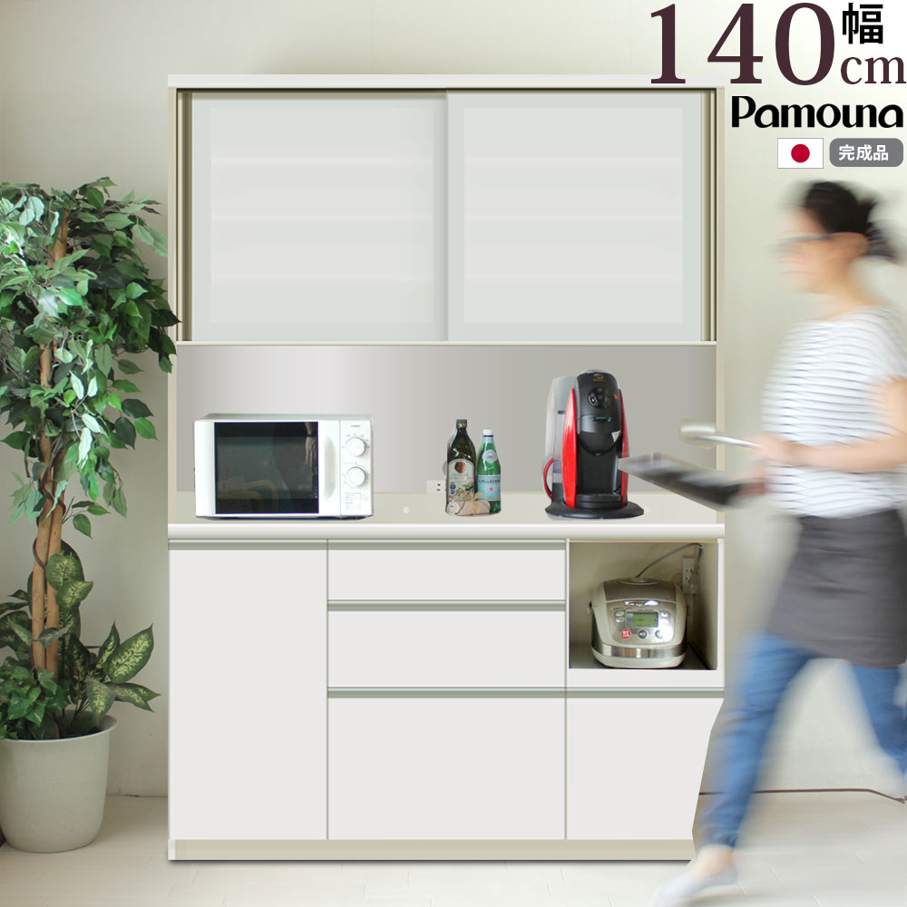 楽天市場 パモウナ 食器棚 幅140cm 奥行50cm 高さ198cm ID 完成品 棚 国産 日本製 キッチンボード ダイニングボード カップボードレンジボード オープンダイニングボード レンジ台 キッチン キャビネット ラック 引き出し 一人暮らし 新生活 収納 送料無料 納品日指定。