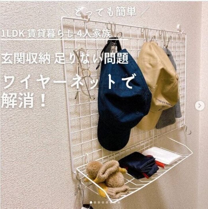 100均のワイヤーネットで玄関に壁面収納を。子どもが自分でできる仕組みにも最適! - 片づけ収納ドットコム。