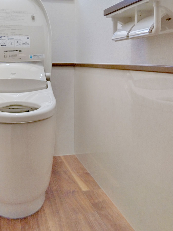 品川区のトイレリフォーム事例 腰高まで貼った壁パネルで掃除がしやすいトイレ。