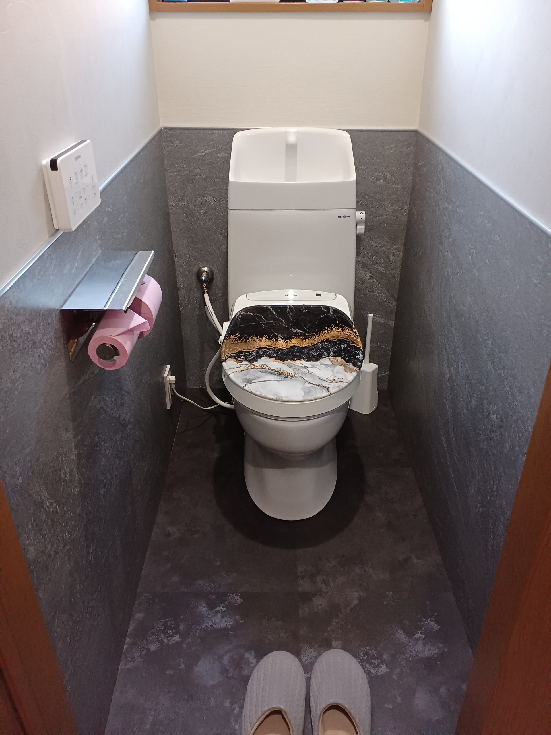 トイレ改修工事 タイル張りからモダンなクロス張りへリフォーム事例 施工例福知山市のリフォーム専門店住まいの困りごとなら何でもヨネダリフォームに相談。