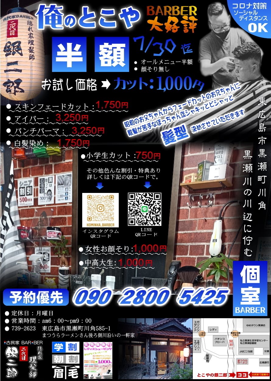古民家barber二代目銀二郎 東広島市の理容室 カットコンシェルジュ。