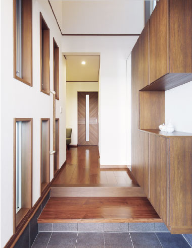 狭小地の2世帯住宅。吹き抜けの玄関土間とスキップフロアで家族をつなぐ家長岡市建築実例-新潟、三条、長岡の注文住宅・家づくりならグリーンスタイル。