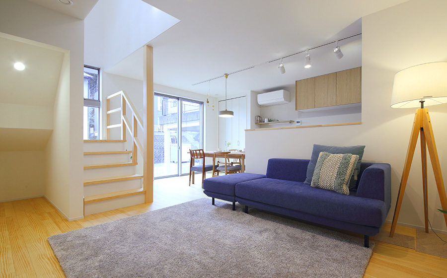 吹き抜けのある明るい狭小住宅東京建材株式会社。