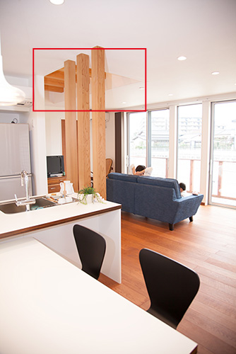 吹き抜けのロフトと自然光が溢れる開放感あふれるLDK - 事例写真「北側採光の狭小住宅」注文住宅のハウスネットギャラリ。