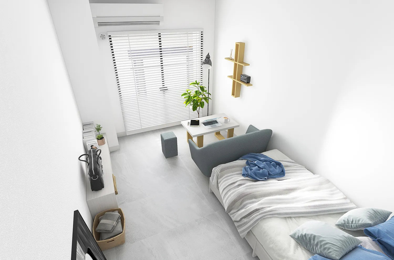 窓際だけじゃない!ワンルームでもベッド配置を思いのままに。