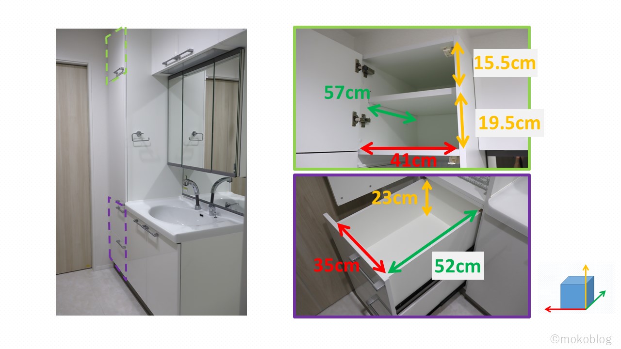収納はこれでバッチリ!リュックスドレッサー 化粧台 のサイズを測りました。モコブログ。