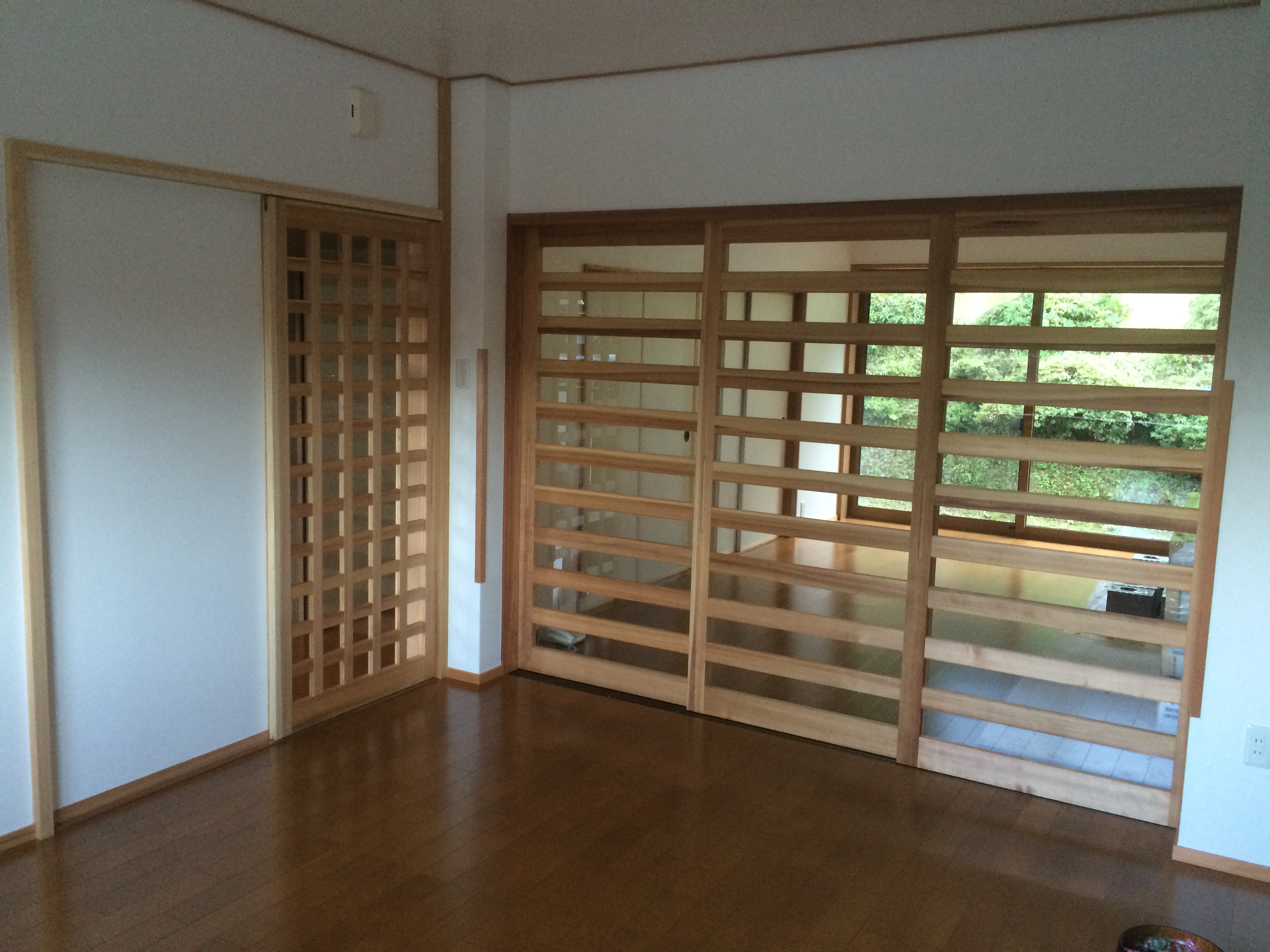 吹田市 木製建具 縦格子戸 – 吹田市・豊中市玄関・窓リフォーム・内窓取付井上昇商店。