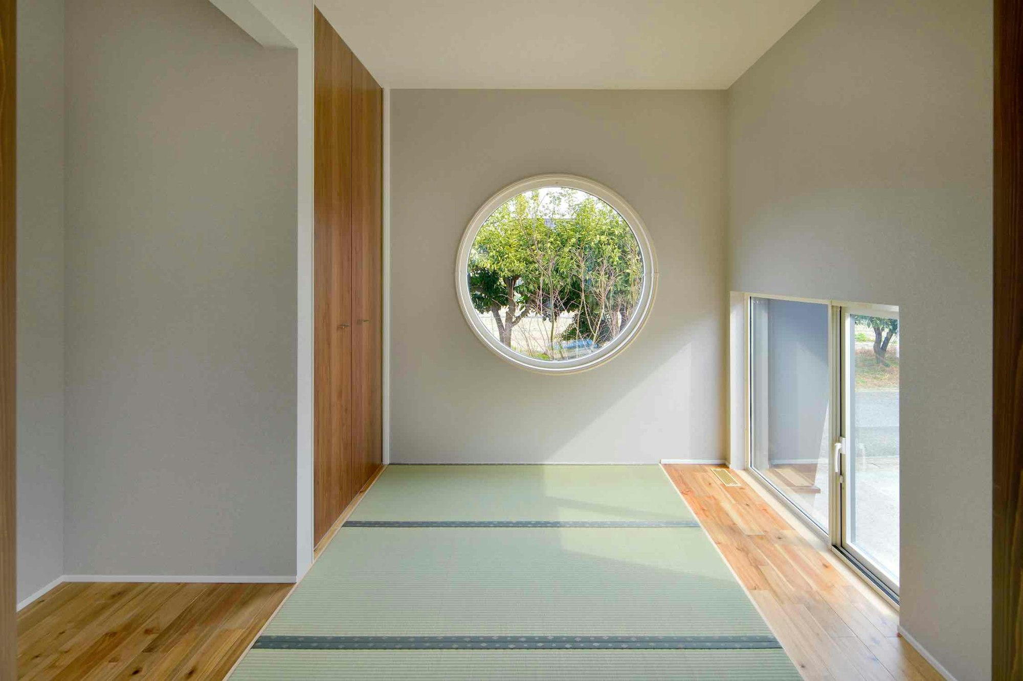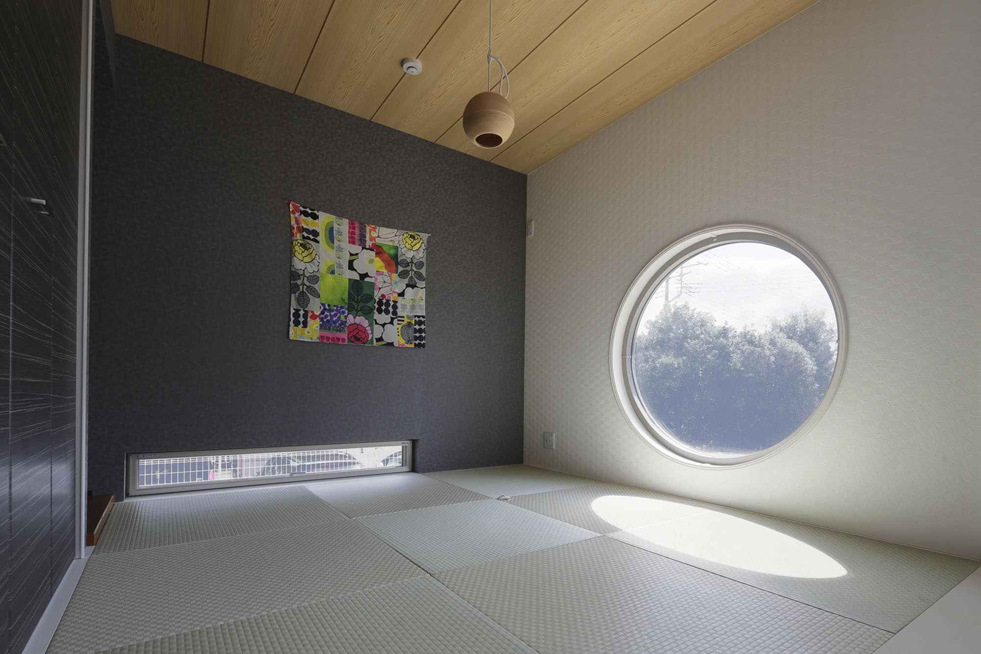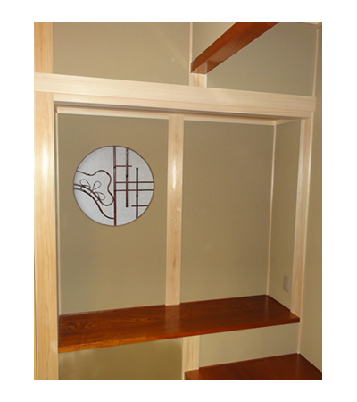 和室小上がり畳コーナー和モダン丸窓障子。