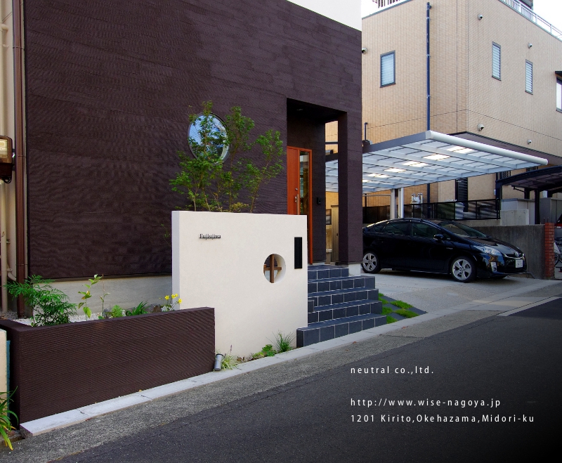 モザイクタイルを使用した丸窓がおしゃれなモダン和風デザイン の新築外構愛知県名古屋市の外構 エクステリア ・新築外構・お庭⼯事は専⾨ショップディーズガーデンへ。