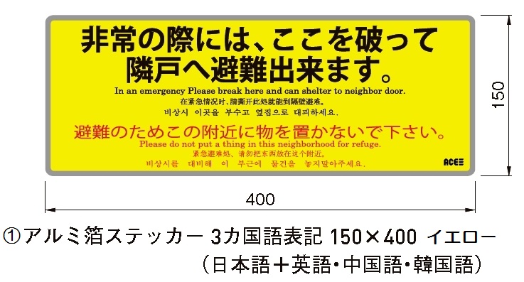 バルコンー避難ステッカー アルミ箔ステッカー 3カ国語表記 商品詳細大木金物店 バイ・モア。