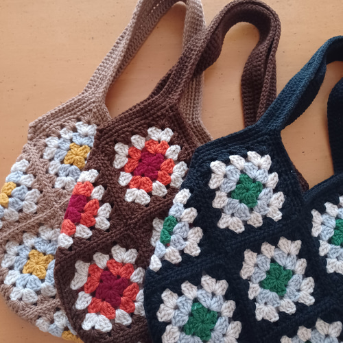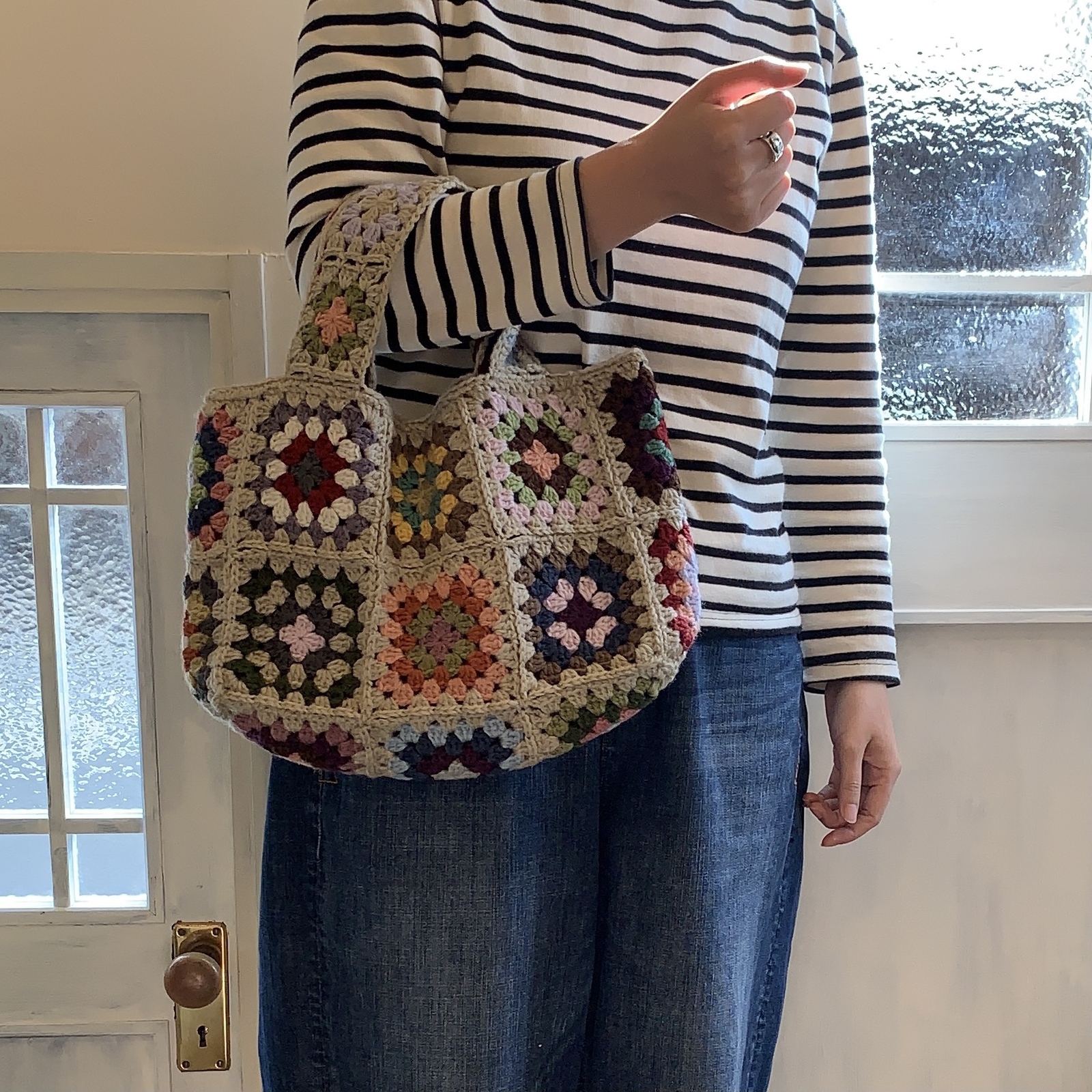 handmade グラニースクエア モチーフつなぎ かばん トートバッグ ハンドメイド 個性派ss2door。