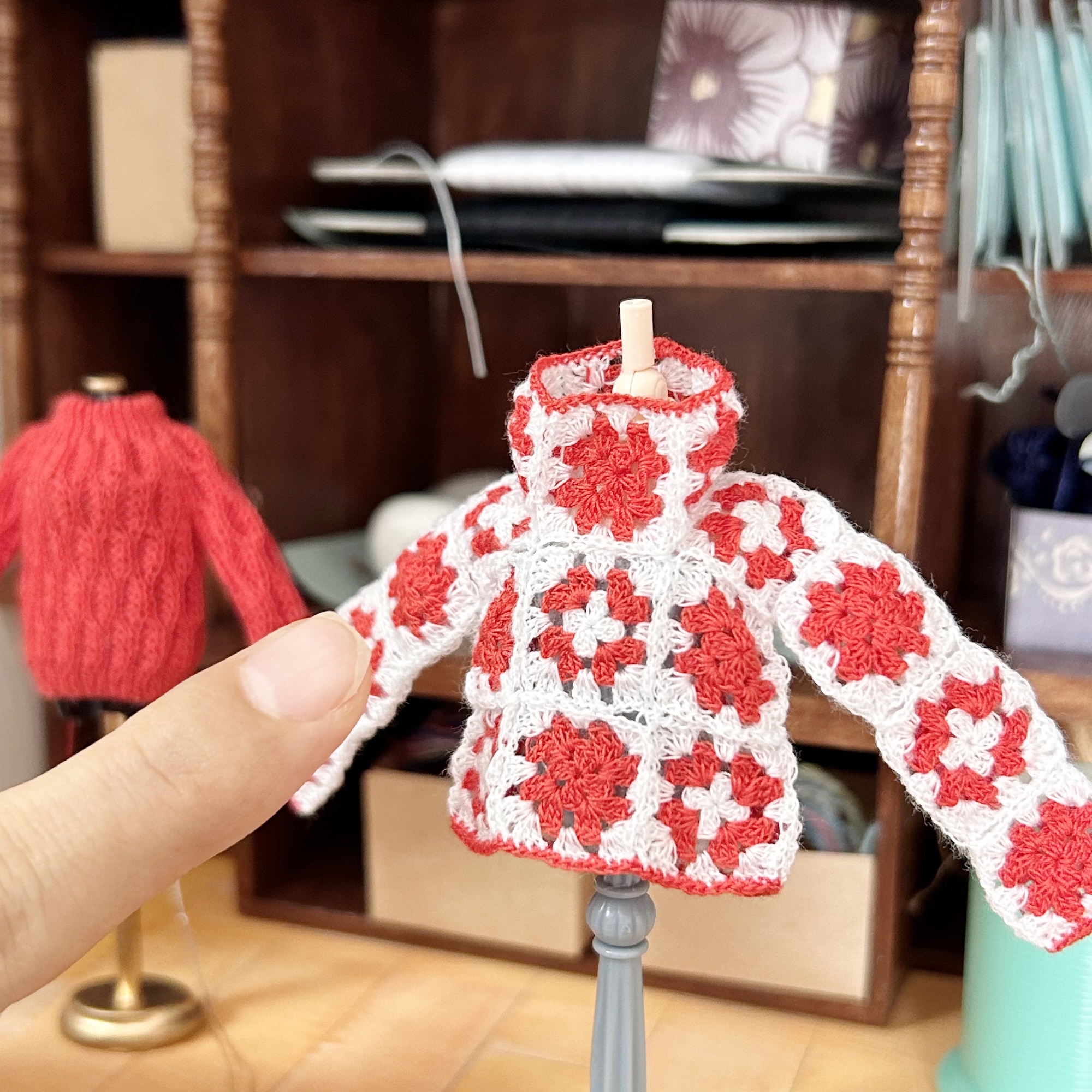 グラニースクエアのモチーフつなぎセーター 1 12スケールミニチュアと、あと人間用にもなりそうpiggiesagogo。