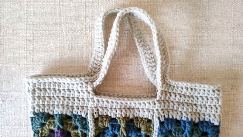 簡単なのにかわいいつなぎ方!「グラニースクエアをつないだ横長バッグ」。