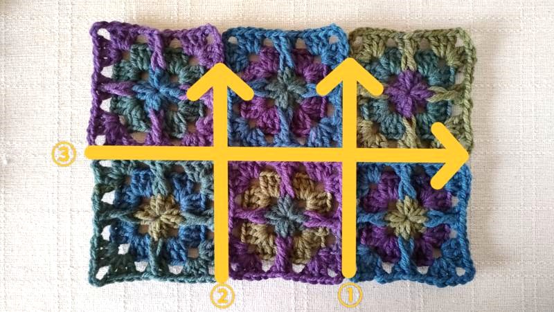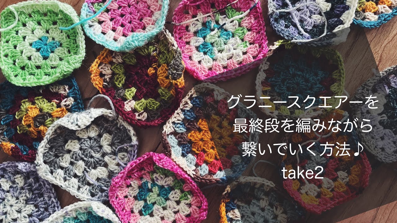 1回完結レッスン 糸始末は1回だけ!無限グラニースクエアモチーフつなぎの編み方編み物。