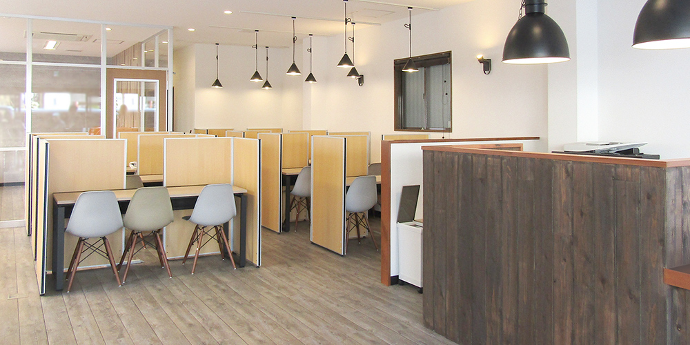 店舗デザイン・内装例 Case019-塩釜市にあるカフェの様な学習塾です。仙台市の店舗デザイン・店舗内装事務所 株式会社8mm ハチミリ。