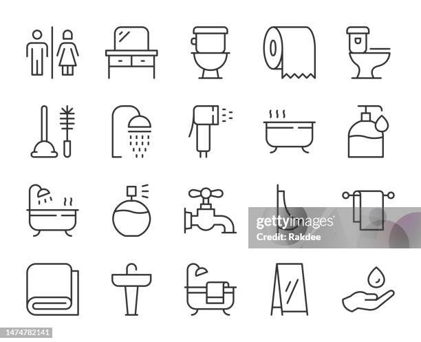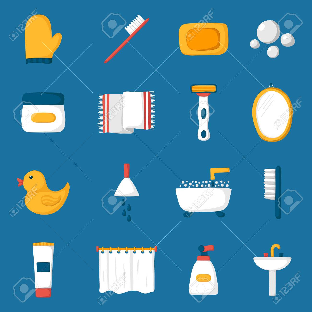 お風呂道具イラストアイコンセット Bath tool illustration icon set Stock VectorAdobe Stock。