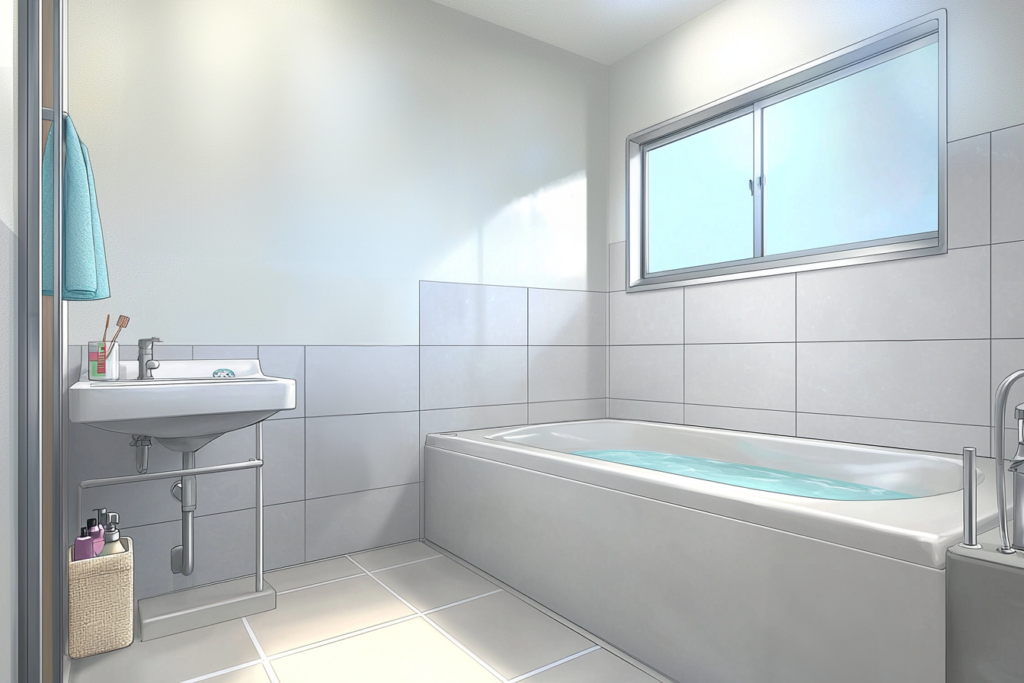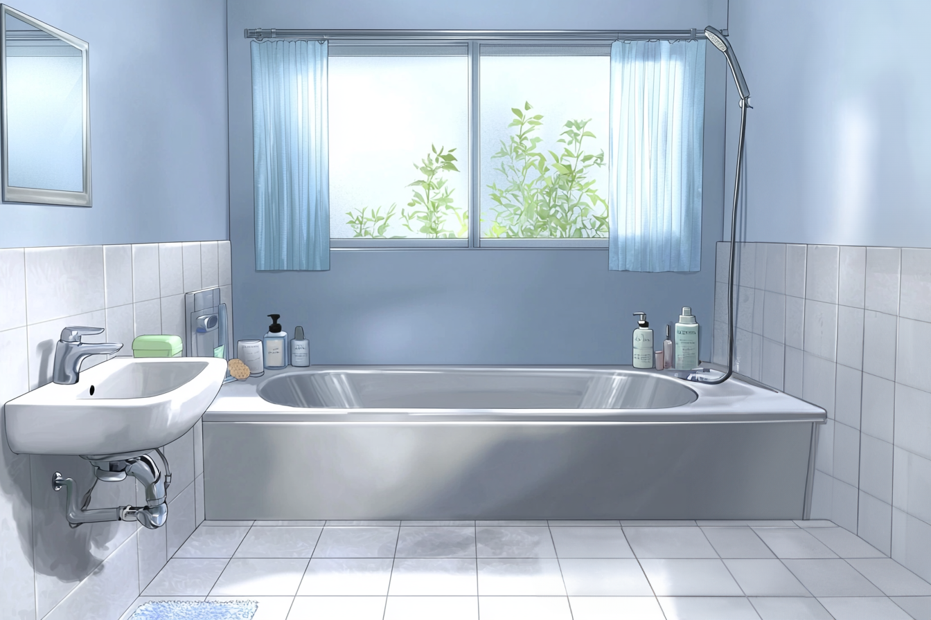 フリー素材アパートの浴室 4枚背景イラストみんちりえ。