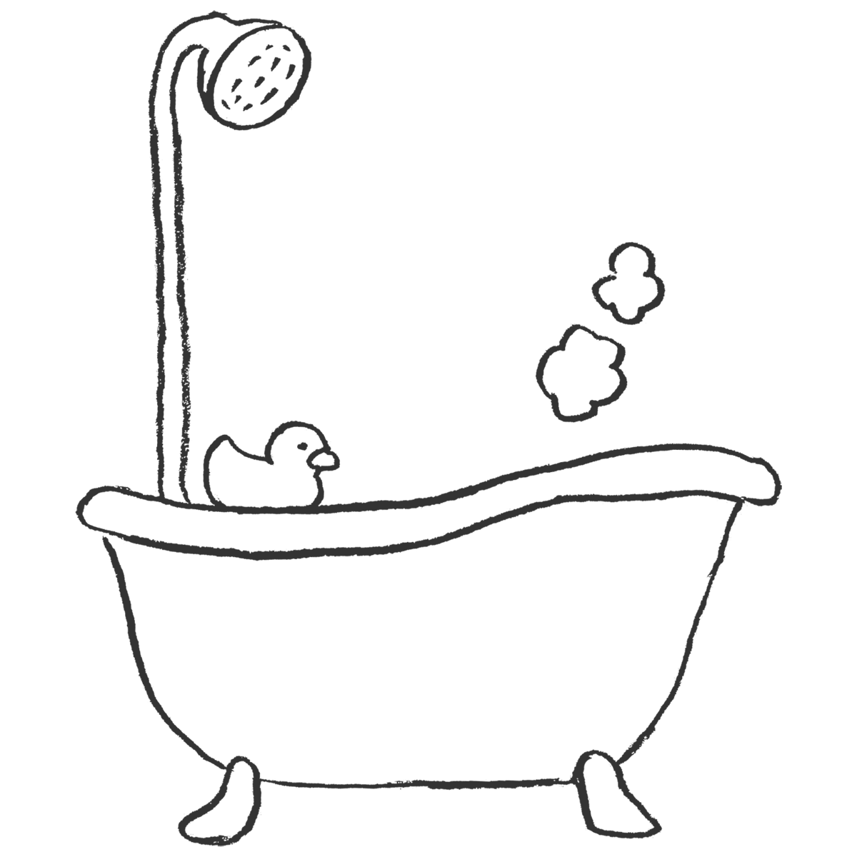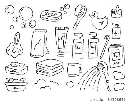 お風呂用品やバスルームのモノクロのイラストのイラスト素材84598651- PIXTA。