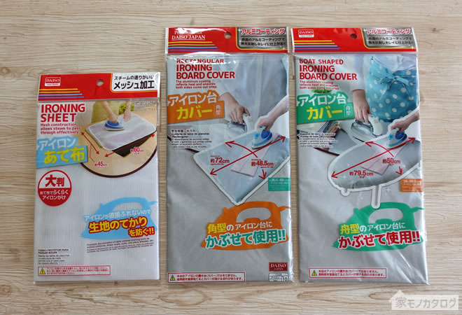 100均ダイソーのアイロングッズ商品一覧。あて布やアイロン台カバー 100円。