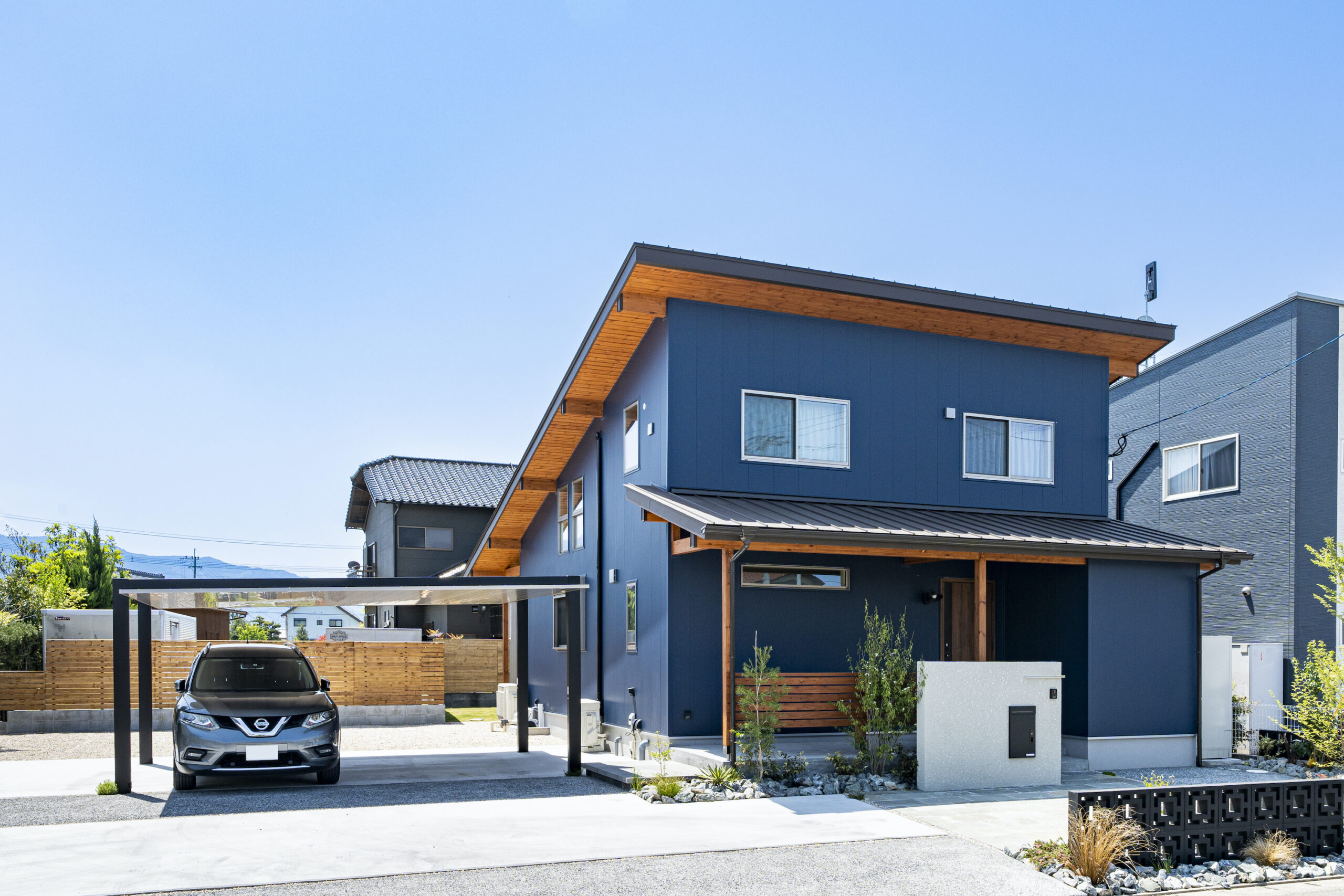 名古屋市オーバーハングバルコニーとハーフビルトインガレージの家重量木骨の家。