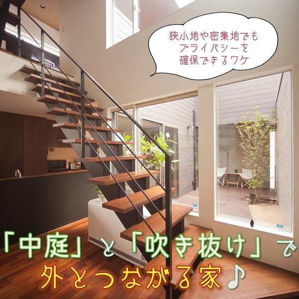 開放感抜群!吹き抜けと中庭のあるお家広島ママpikabu。