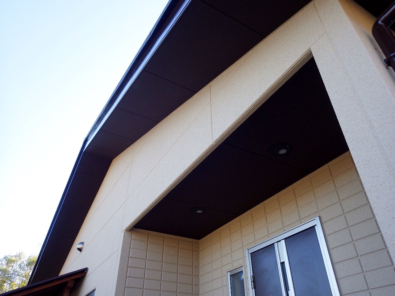 豊田市軒天をブラウンで塗装し木目風に外壁塗装屋根塗装豊田市の外壁塗装・屋根塗装・雨漏り診断ならペイントスタジオ。