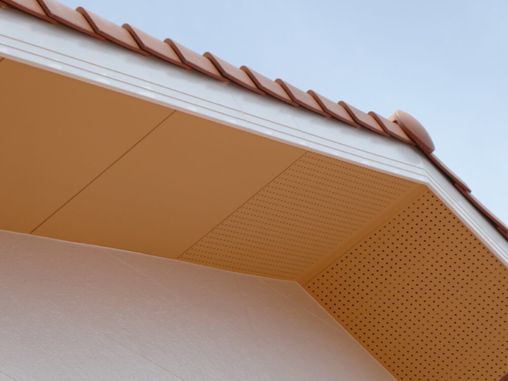 軒天をオレンジ色でアクセントに千葉の外壁塗装・屋根工事リフォームの株式会社みすず。