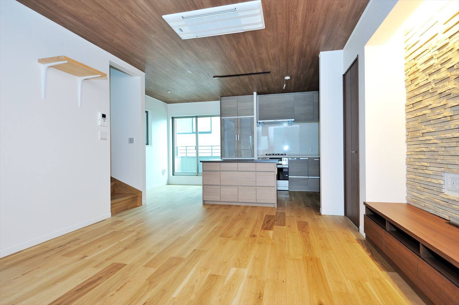 キッチン天井クロスの施工事例~木目に貼り替えてナチュラルテイストに~スタッフブログ新築マンションオプションとリフォームのRe:Mansion。