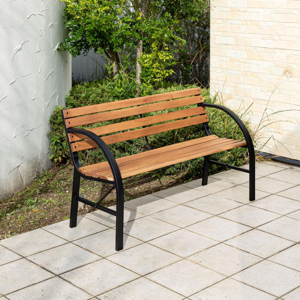 ベンチ パークベンチ ナチュラル 幅126cm 木製ガーデンベンチ 木製ベンチ ウッドベンチ 公園ベンチ チェア 椅子 屋外 2人掛け 天然木アイアン ひじ掛け 庭 テラス ベランダ ガーデン 屋外用ベンチ おしゃれ: リビングート ANA Mall店ANA Mallマイルが貯まる。