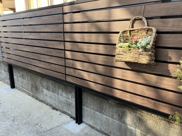 ハンギングでおしゃれに!木目調目隠しフェンス~宮崎市K様邸~。