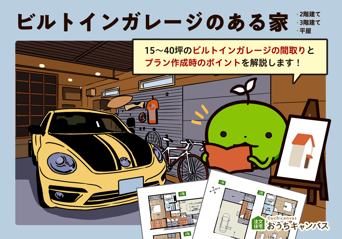 ビルトインガレージで真似したいおしゃれな間取り5選!坪数ごとの建築費用も解説 敷地面積15〜40坪・平屋 建てたい家のイメージづくりおうちキャンバス。