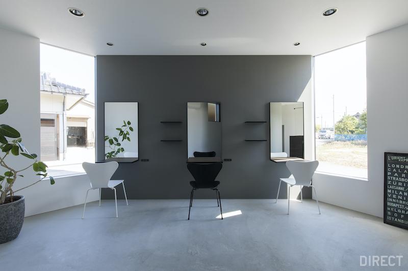 名古屋市内 美容室店舗のモノトーン内装愛知県名古屋の株式会社バイソン。